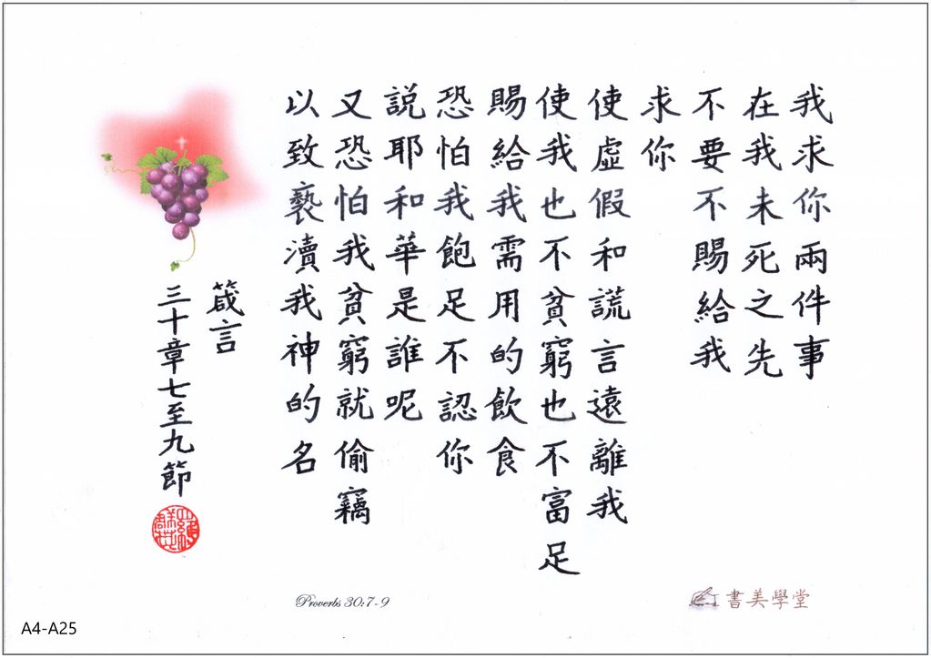 「箴言」裡就形容一句話說得合宜,像是裝在銀網子裡的金蘋果一樣,珍貴而悅目;我就來書法這節箴言與親友們分享,願您常常說話合宜如口出金言,成為別人的祝福!